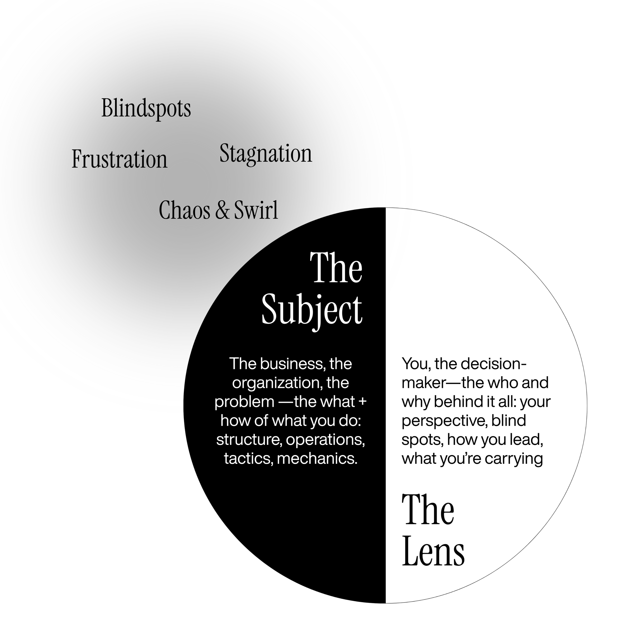 But by only addressing one side or the other, we can lose sight of the challenges (and solutions) in front of us. The Pinpoint’s 2-part structure ensures that we evaluate everything through multiple perspectives in order to get more precise about the path forward. It’s a 90-minute session that's equal parts diagnostic, inventory, work therapy, and honest conversation. Structured enough to cover ground, open enough to go where it needs to go.